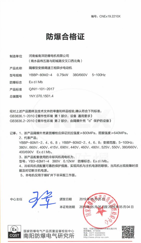YBBP防爆電機(jī)防爆合格證